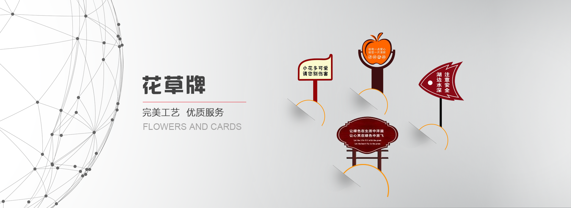 花草牌是指樹立在花草叢中用于提示愛護花草的標識牌。又稱小草牌或草牌,屬于溫馨提示的范疇?;ú菖埔话爿^矮,一般高度在40公分到1.2米之間,是雙面,厚度一般是4公左右。